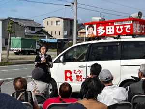 9時30分、支援者の皆様方に見送られ、街宣活動へと出発しました。