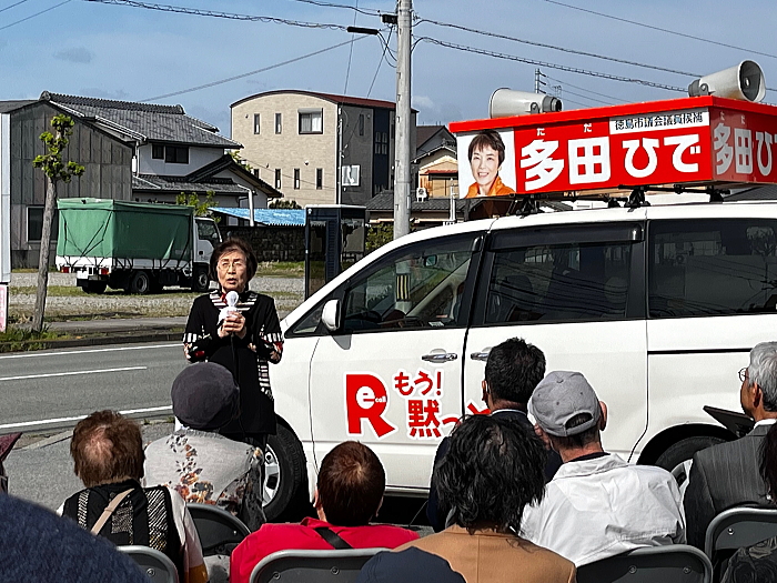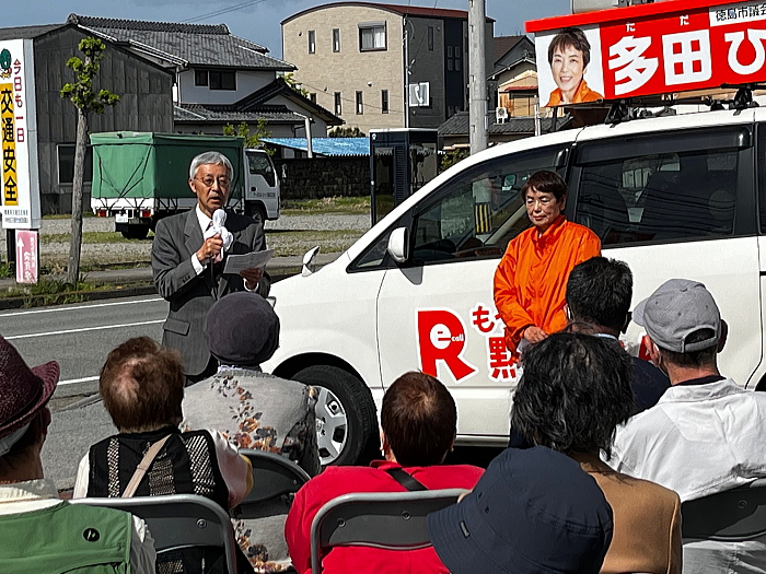徳島市議会議員選挙が告示された本日4月16日、午前9時より多田ひで選挙事務所前で出陣式を行いました。