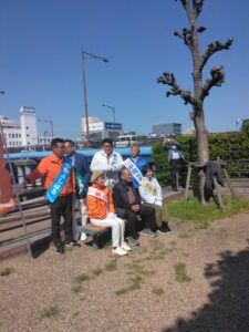 13:45からは「リコールの会」推薦候補が一堂に集まり、かちどき橋でスタンディングを行いました。