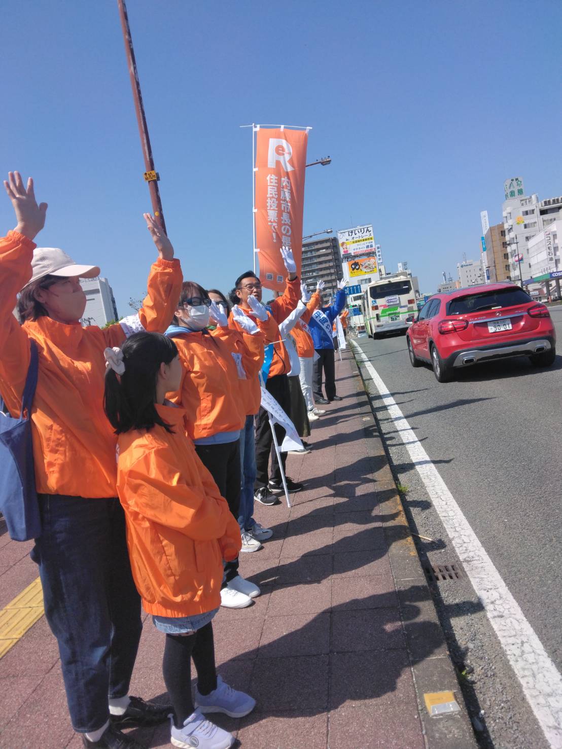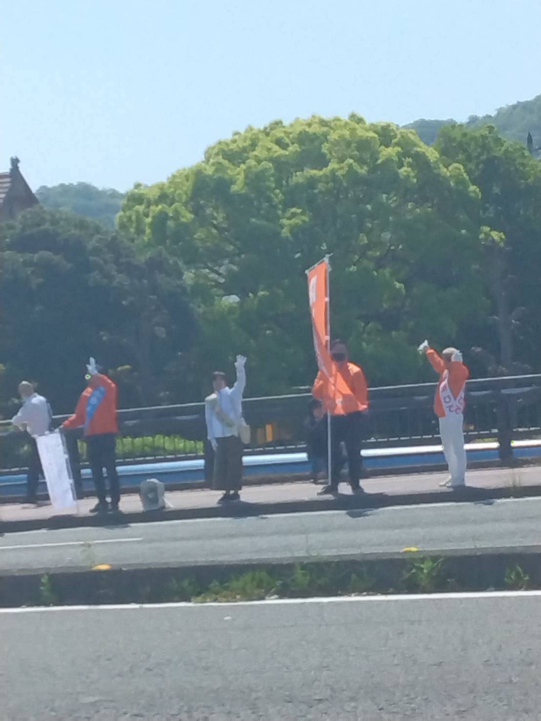その後、川内町~応神町と街宣車を走らせ、国府町で辻立ちを行いました。