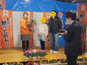 お孫さんたちに花束をいただきました。